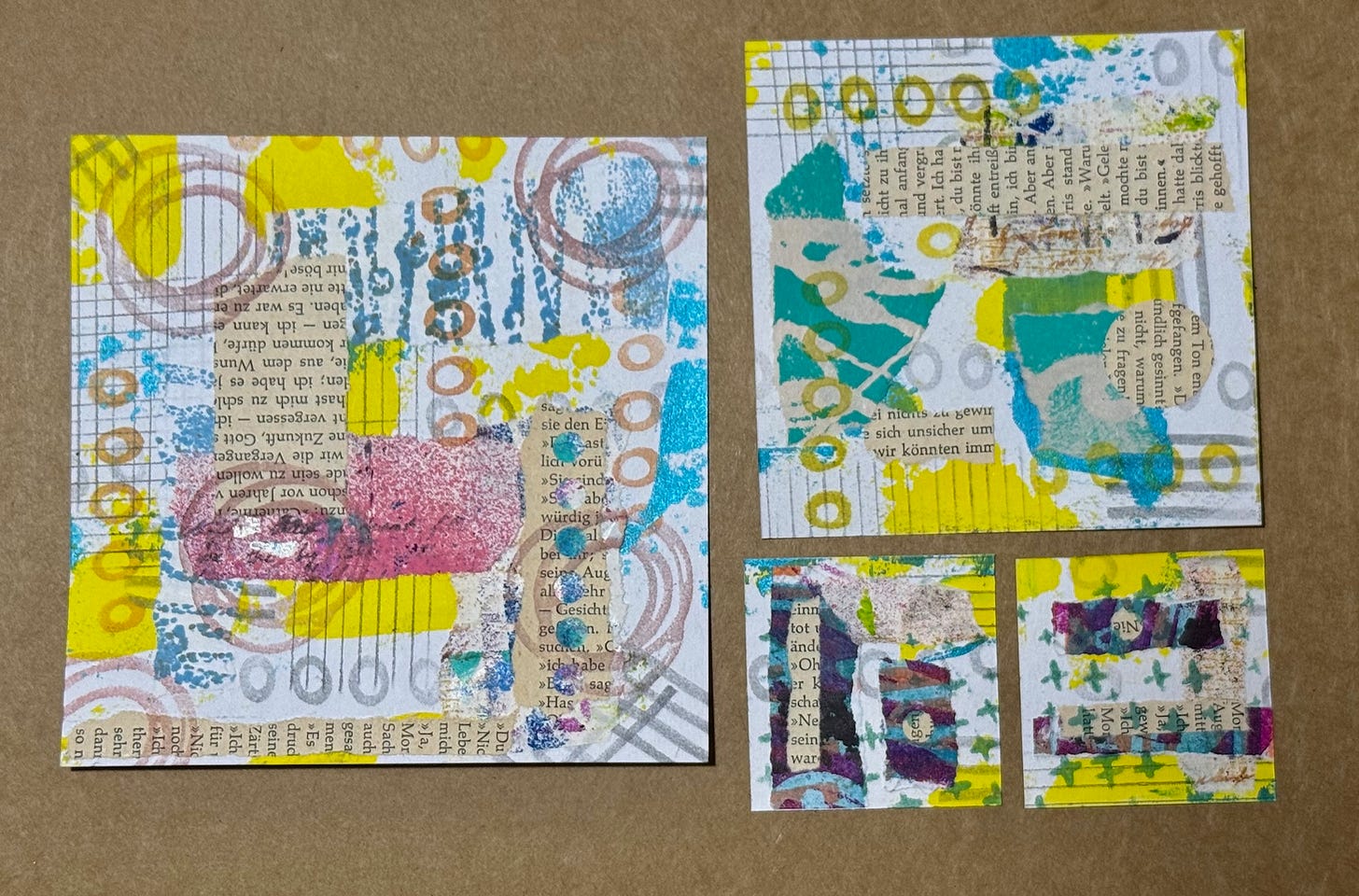 When you work like this you get a bit of a boost from seeing several completed pieces for the same amount of time spent. This can really help you keep coming back to your supplies when you need a break from whatever it is that is thundering on in your life. Look at where you are at and honestly say “Do I need to break up this pattern.” If you answer ‘yes’, which I expect most everyone would, find something to give yourself the left you need, tap those brakes a bit and slow down.